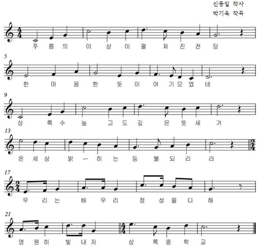 1.태양-봉사(항상 베푸는 자세) 2. 대지-정직(거짓 없는 마음) 3.항목-사랑(변함없는 사랑)뜻 풀이:태양의 기운을 받고 대지에 중심을 두어 늘 푸른 모습으로 우뚝 선 의지의 표상